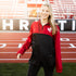 Soft and quiet, square dobby, 100% polyester windproof / water resistant jacket. Apron back vent opens for decoration. Hood with integrated rain visor. Mesh lined for cool comfort. Adjustable bottom with bungee and elastic cuffs. Zipper front pockets. Packable.